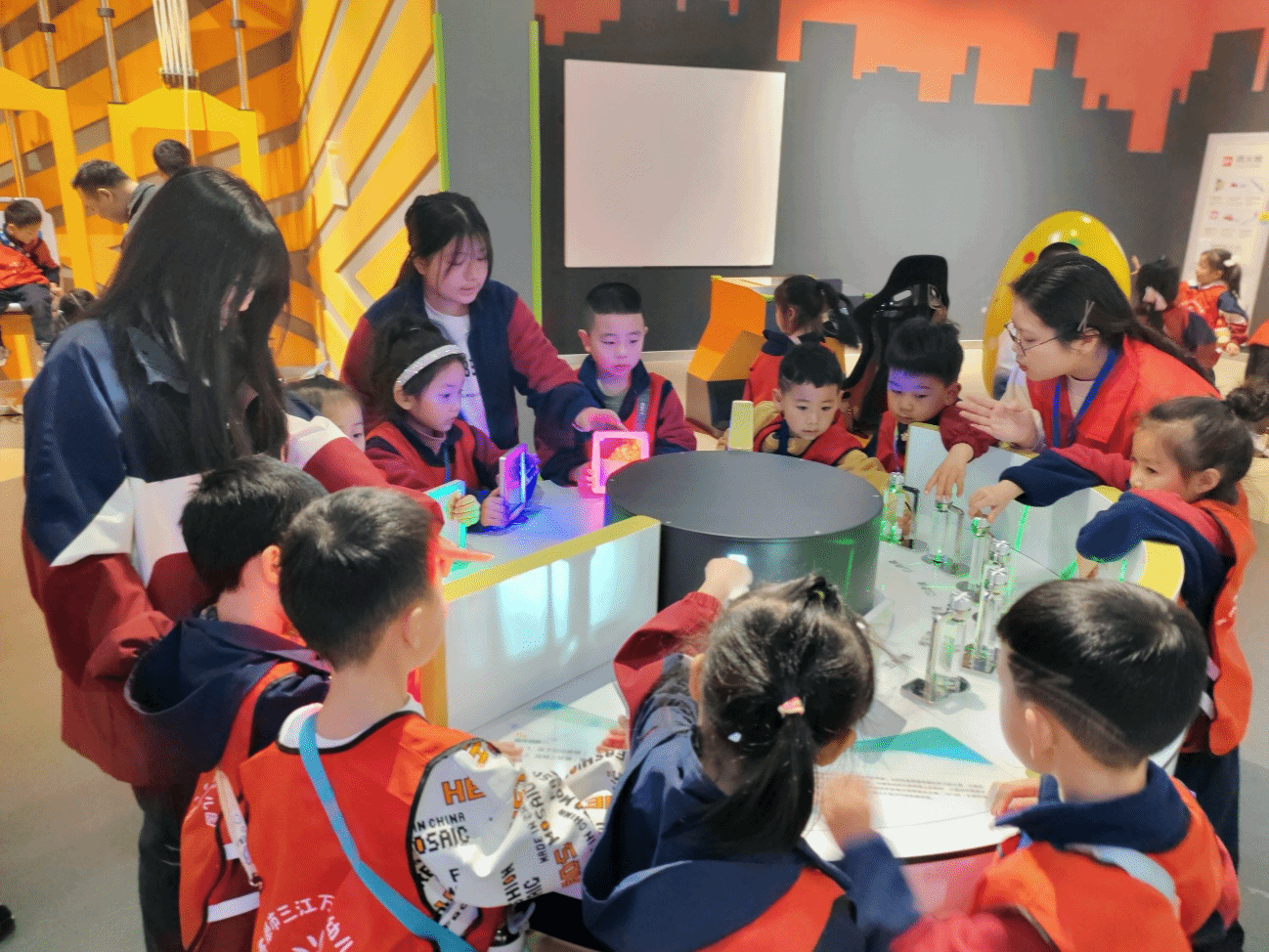 在科技馆,服务团队的师生志愿者为不同年龄段的参观者提供生动有趣的科普讲解。面对幼儿园的小朋友们,志愿者们用童趣化的语言和互动式体验,带领他们探索宇宙的奥秘。在宇宙航天展区,逼真的星球模型和模拟太空环境让孩子们仿佛置身浩瀚星空。当模拟火箭发射的轰鸣声响起,火箭模型腾空而起,小朋友们欢呼雀跃,科学的种子在他们心中悄然萌芽。志愿者们用耐心和热情,为孩子们打开了一扇通往科学世界的大门。