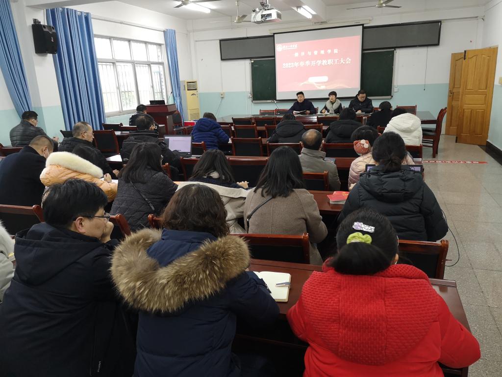 2023年2月12日,BETWAY必威在经法楼403会议室召开全院教职工大会,传达公司2023年春季学期教职工表彰大会暨中层干部会议精神,集中学习公司党风廉政建设要求,布置公司2023年春期开学各项工作。会议由公司党委书记刘莉萍主持。