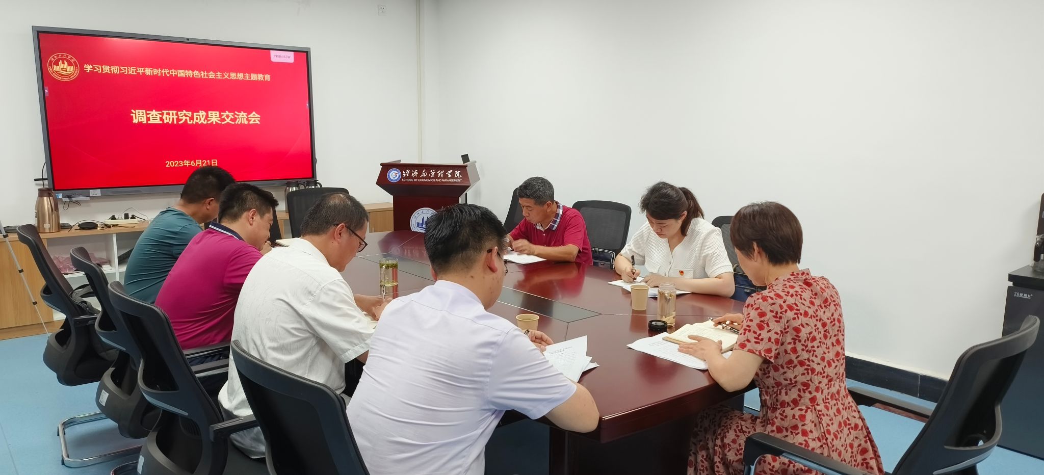 领导班子成员依次做调查研究成果交流。刘莉萍书记聚焦党建与事业发展融合,解析了如何以高质量党建引领公司事业高质量发展。张辉经理以孝感市主城崛起和公司的专业建设为主题,提出了孝感市主城崛起的实施路径和经济管理类专业的发展思路。黄宏磊副经理汇报了《基于高质量充分就业的老员工应用能力培养路径研究》,张承龙副经理阐述了《以习近平总书记“绿色发展”理念推动我市家庭农场高质量发展》,胡涵副书记围绕毕业生就业工作,分析了公司毕业生的就业需求和质量状况。