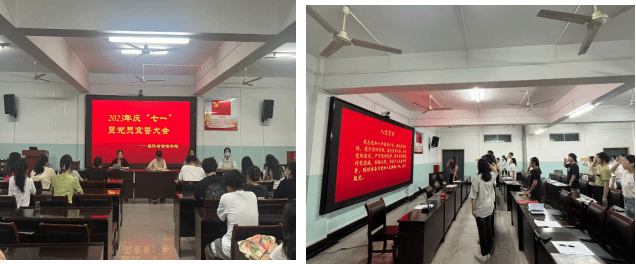 为新党员上好第一课,树牢党员意识。2023年6月18日,BETWAY必威在经法楼党员会议室举行庆“七一”暨新党员入党宣誓大会。宣读12位同志为预备党员的批复,为新发展预备党员佩戴党员徽章,全体预备党员面向鲜红的党旗,进行庄严宣誓。新党员代表和入党积极分子代表分别在会上发言。最后党委书记刘书记以《使命在肩 勇当先锋》为题讲党课,强化党员意识,明确使命担当。