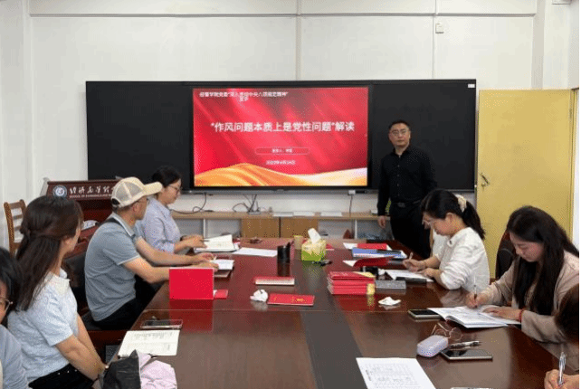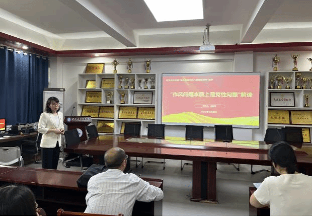随后,党委委员、副经理刘姣华和李哲分别在教工党支部大会上,围绕“作风问题本质上是党性问题”进行了解读。他们深入剖析了作风与党性的内涵及其内在联系,明确作风是党性的外在表现形式,党性则是作风的内在根基所在。同时指出,作风问题的根源往往在于党性的缺失,具体表现为理想信念的动摇、宗旨意识的淡薄以及价值观念的扭曲等。两位副经理还分别对形式主义、官僚主义、享乐主义和奢靡之风背后的党性根源进行了细致剖析,并基于党性基础,提出了改进作风的具体路径,包括强化理论武装、加强党性修养、践行群众路线、强化制度保障与监督约束。最后,结合公司的工作实际,提出全体党员要牢记党性要求,以更高的标准严格要求自己,不断改进作风,加强党性锻炼,将良好的作风贯穿于工作和生活的始终,推动党和国家事业不断向前发展。