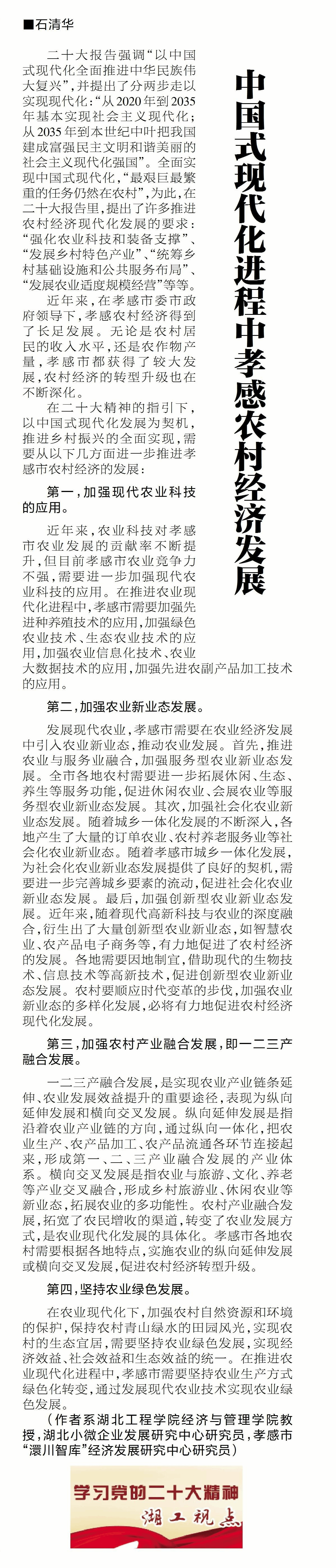 “学习宣传贯彻党的二十大精神 中国式现代化进程中孝感农村经济发展”
