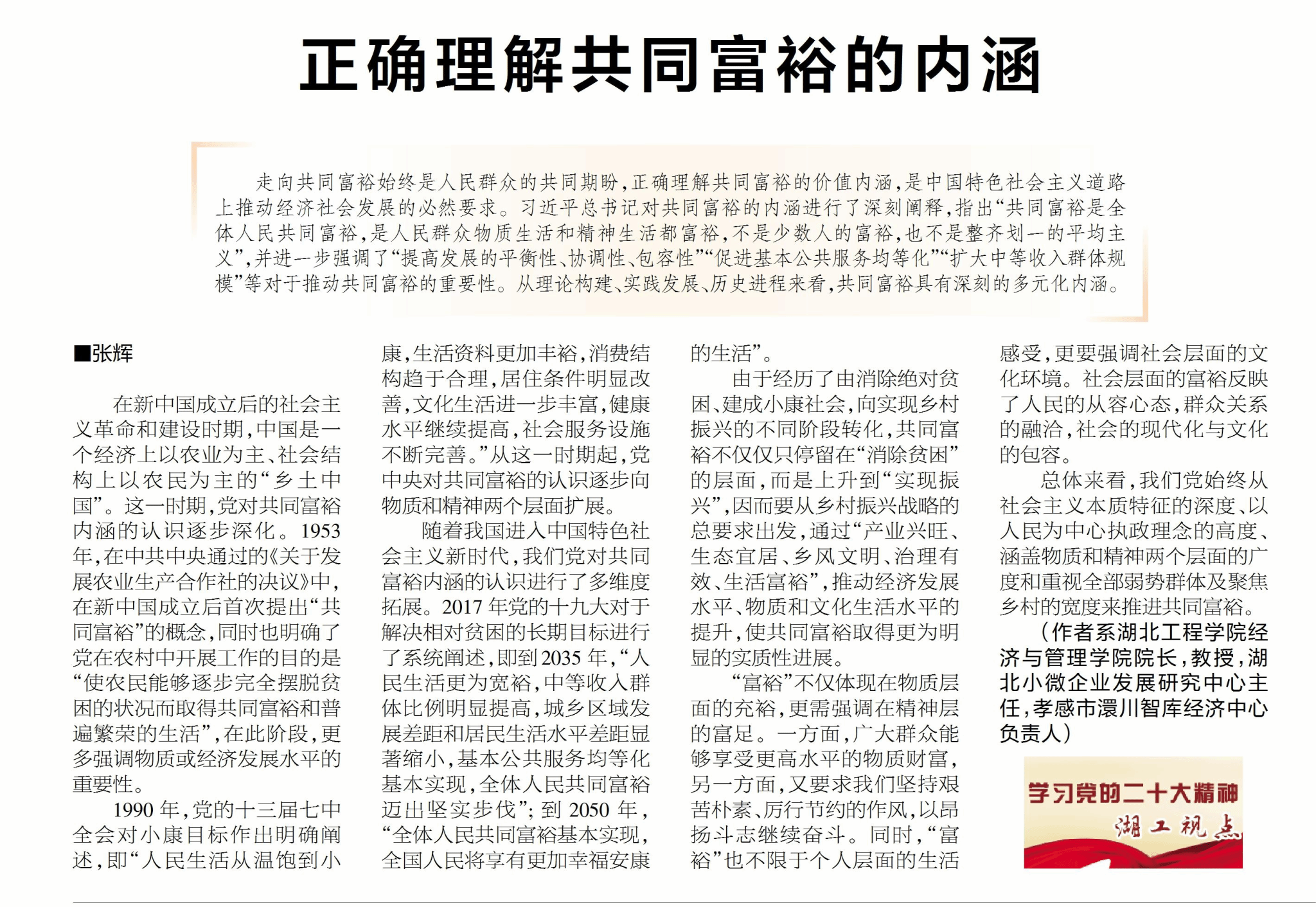 “学习宣传贯彻党的二十大精神,正确理解共同富裕的‘富裕’内涵”