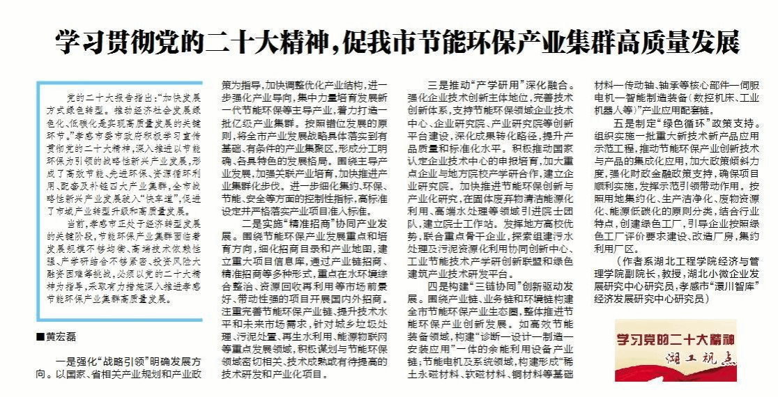 “学习宣传贯彻党的二十大精神,促孝感节能环保产业集群高质量发展”