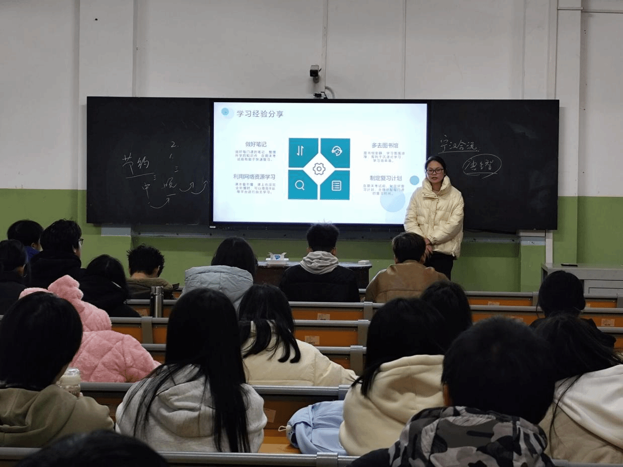 国家奖学金和校级特等奖学金获得者黎雨悦同学在24级经济学专业班级进行了学习经验分享交流,她倡导“日拱一卒 功不唐捐”理念,指出学习要注重课堂效率,对学科针对性复习,合理分配期末时间,找到适合自身的学习方法,做好预习复习,同时还鼓励学弟学妹们积极参与学科竞赛、考级考证。