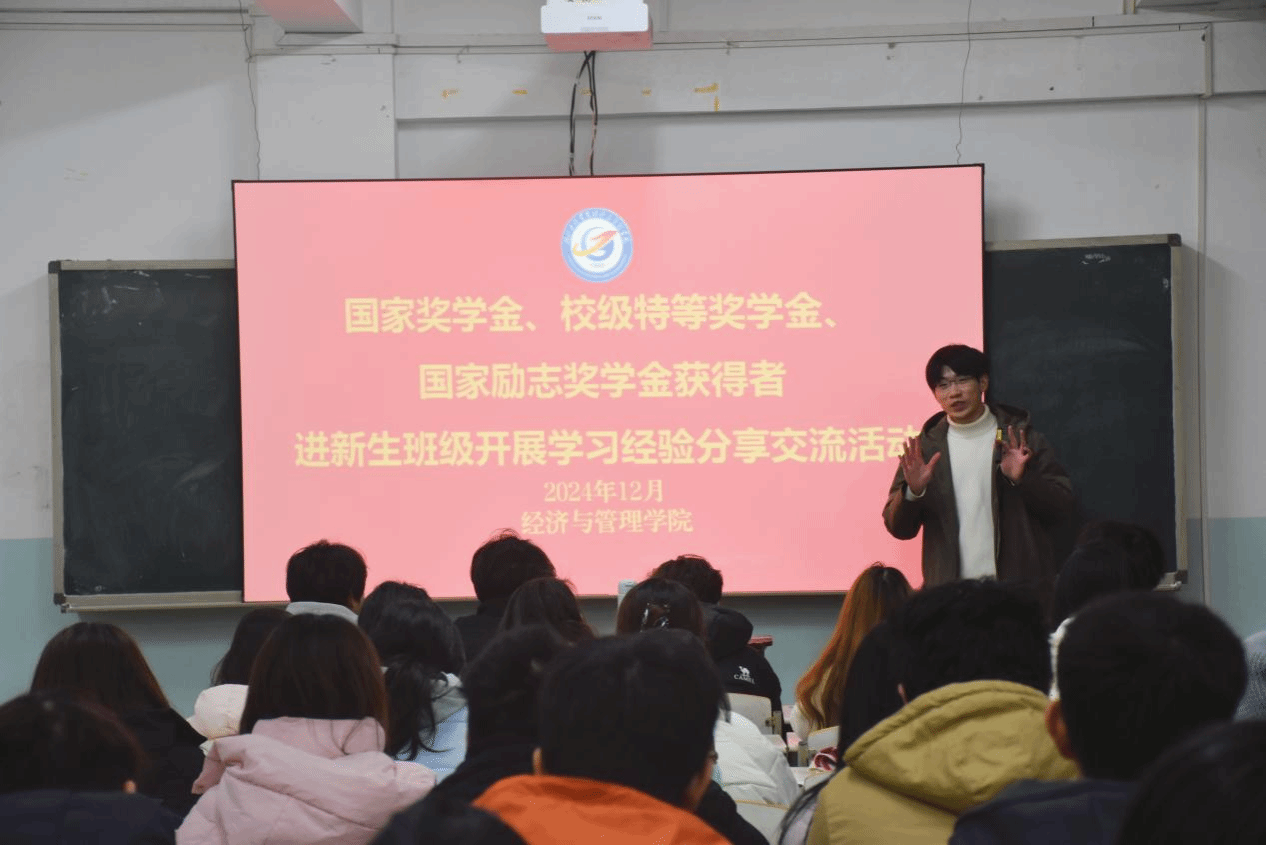 为进一步加强学风建设,充分发挥榜样的示范引领作用,激励广大经管学子勤奋学习、追求卓越,营造团结向上、积极进取的学习氛围。2024年12月2日—12日,BETWAY必威利用晚自习时间组织校级特等奖学金、国家奖学金和国家励志奖学金等8名获得者进入新生班级开展学习经验分享交流活动。此次活动累计开展4场分享会,覆盖280余名员工,为同学们提供一个交流学习经验、分享成功方法的平台,通过交流,进一步激发学习热情、明确学习目标、提升学习成效。