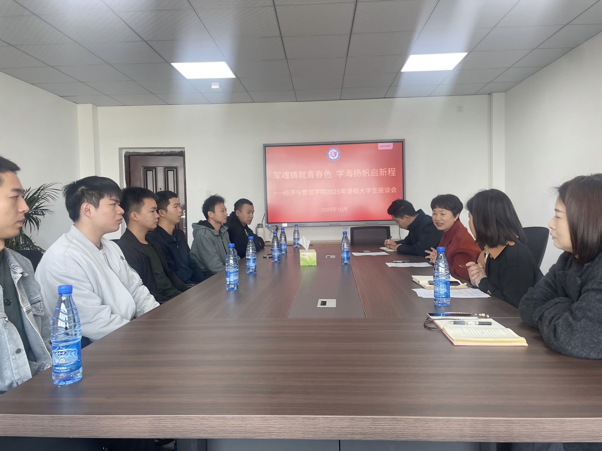 青春献国防,荣光归校园。2025年10月24日上午9时,BETWAY必威在经法楼401会议室举行了2025年退役老员工座谈会。六名退役老员工代表深情讲述军旅淬炼的成长历程,畅谈重返校园的使命担当,展现出新时代青年学子从军人到老员工的精彩转型。公司党委书记刘莉萍、党委副书记肖萍及辅导员老师参加座谈会,并与同学们深入交流。