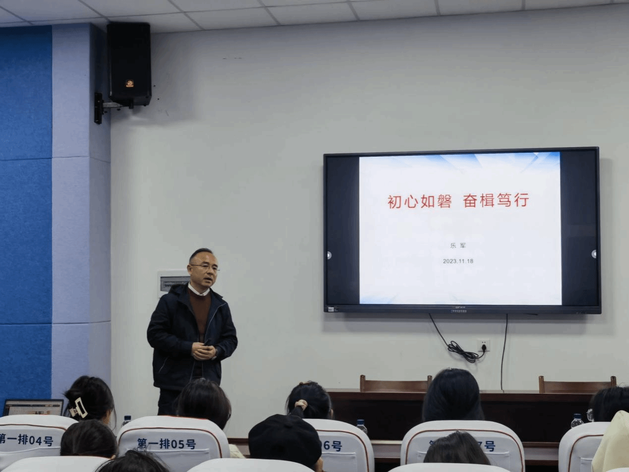 乐军先生讲到他在母校的收获:第一,我们要保持谦卑心理,以诚待人,以谦处事,谦卑做人,沉稳做事;第二,我们要刻苦钻研、奋发向上,学习先辈们的艰苦奋斗的精神。面对学弟学妹今后求学工作中可能会遇到的困难,乐军先生传授了他的三个法宝。第一阅己,要了解自己、认识自己,确定自己的人生目标。要清楚三个问题:“我是谁?”、“我从哪来?”和“我要到哪去?”。第二越己,要明确认识进入社会应该具备的能力以及要克服的困难,由被动变主动。第三悦己,我们要学会自己与自己和谐相处,变得豁达。