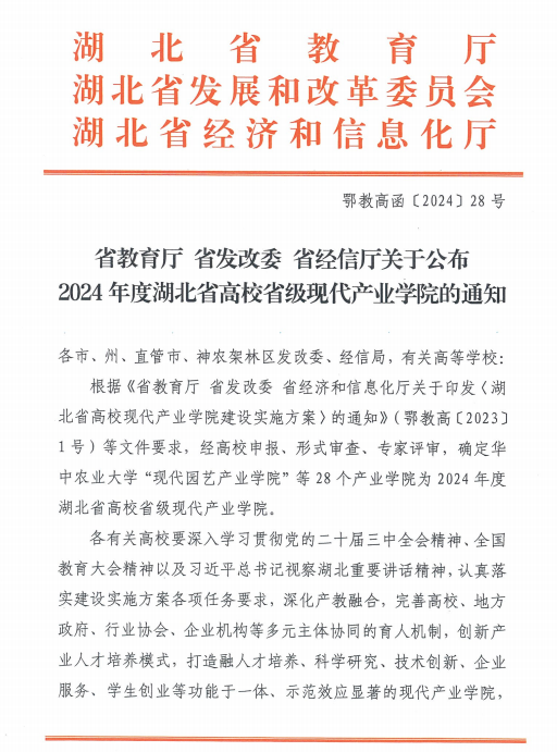 近日,省教育厅、省发改委、省经信厅开展了省级现代产业公司遴选建设工作,公司牵头申报的“现代食品流通产业公司”获批2024年度湖北省高校省级现代产业公司。